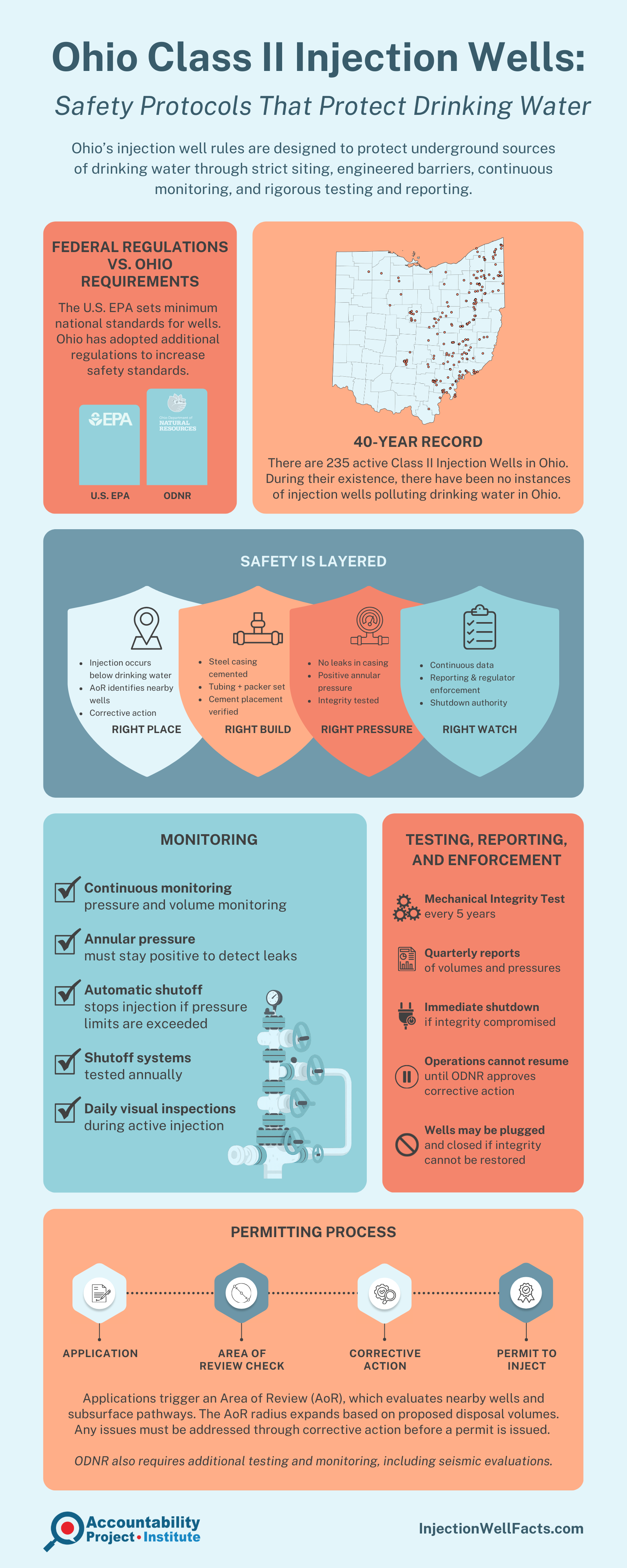In Ohio, the oversight and approval of injection wells are handled by certified professionals at the Ohio Department of Natural Resources (ODNR). Nationally, the U.S. Environmental Protection Agency has strict regulations that must be met.